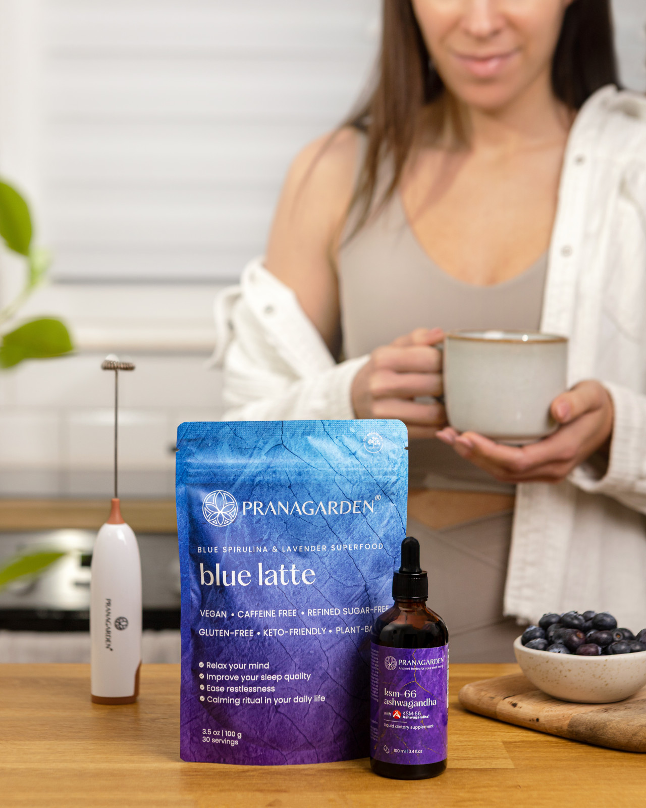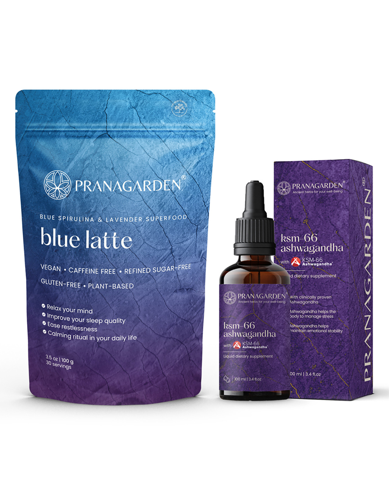 • KSM‑66 folyékony kivonat + Blue Latte – tudatos duó