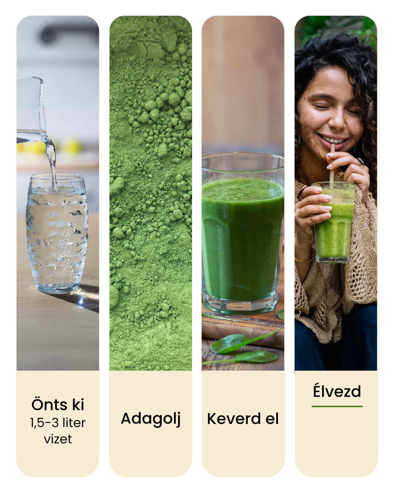 • Energizáló klorofill-matcha cseppekkel