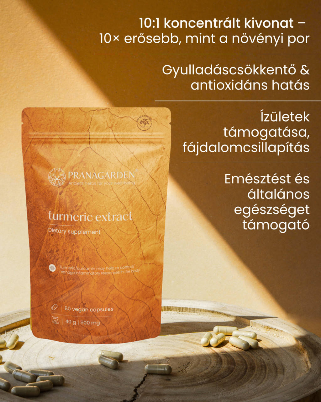 Az indiai sáfrányként ismert kurkuma 10:1 arányú kivonata egyszerű, átlátható összetételben. Sokan tudatos étrend mellett a mindennapi egyensúly támogatására használják.