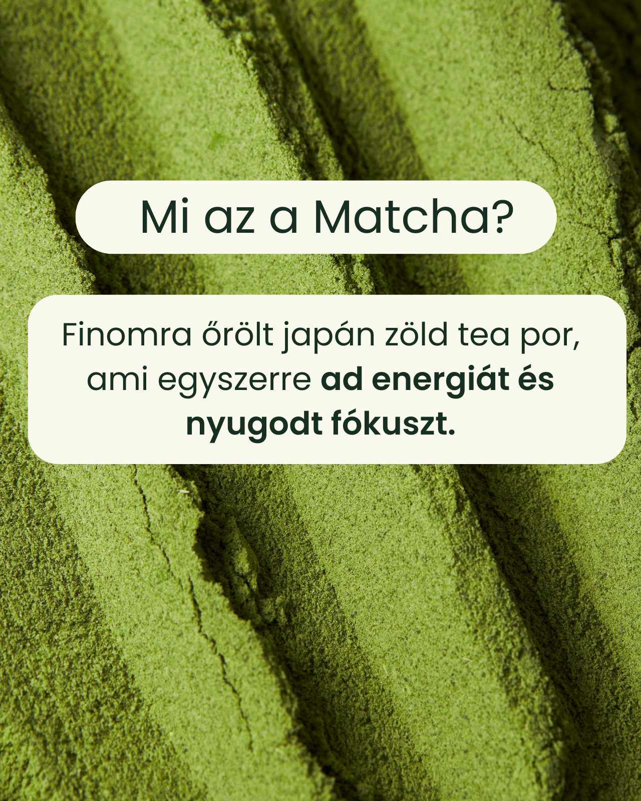 A matcha finomra őrölt, teljes zöld tealevél por, amelynél nem kivonatot, hanem magát a növényt fogyasztod el, így az energia nem sokkol, hanem fokozatosan épül fel minden egyes elfogyasztott adag után.