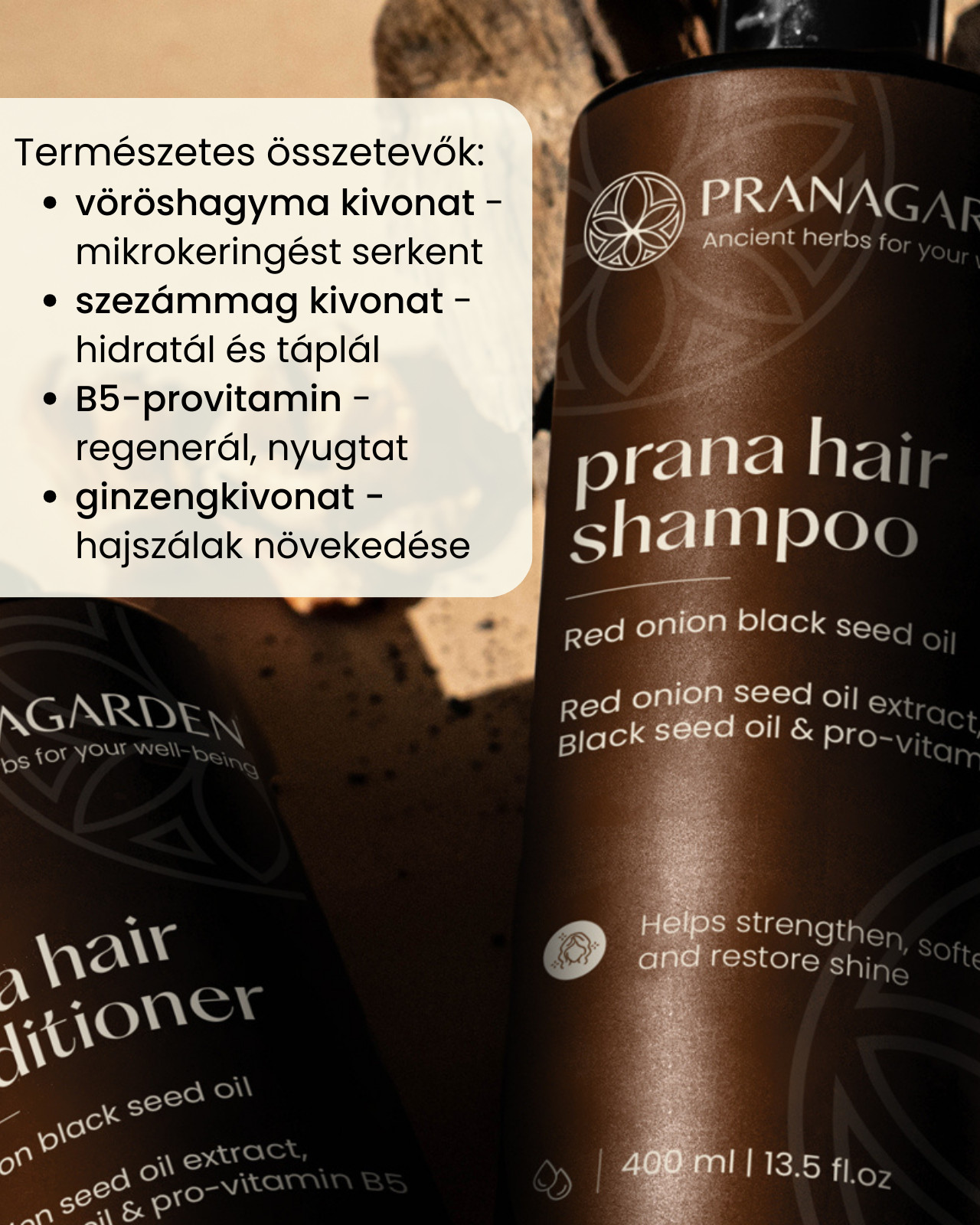 A Pranagarden® hajerősítő sampon nők és férfiak számára egyaránt készült. A tradíciókra épült, de hatékony összetevőkre épült megoldás egy haj és fejbőr regeneráló program, amely nem csupán tisztít, hanem tudatosan támogatja a fejbőr és a hajhagymák egészséges működését. Lágy, természetes eredetű tisztító összetevői nem szárítanak, nem irritálnak, így érzékeny fejbőrön is komfortos érzetet hagynak.
