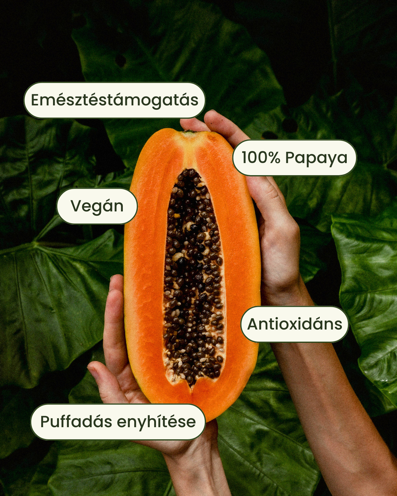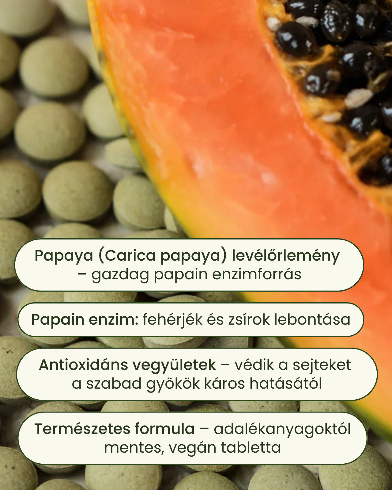 Összetevők: Papaya (Carica papaya) levél őrlemény