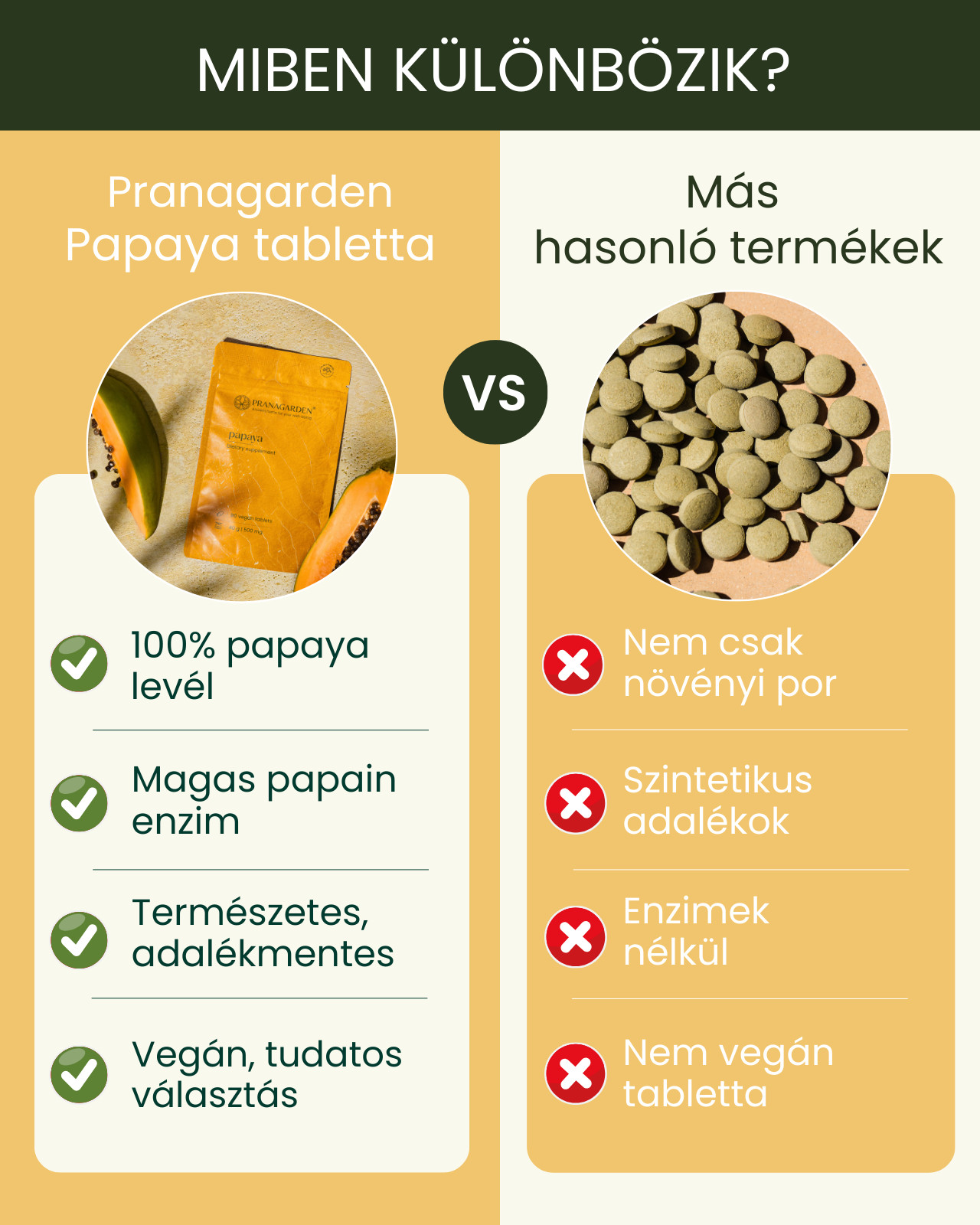 A Pranagarden Papaya tabletta természetes módon támogatja az emésztést és az anyagcsere-folyamatokat. A papaya (Carica papaya) levélben található emésztőenzimek, például a papain, elősegítik a fehérjék lebontását, támogatják a tápanyagok felszívódását és hozzájárulhatnak a komfortos emésztéshez étkezések után.