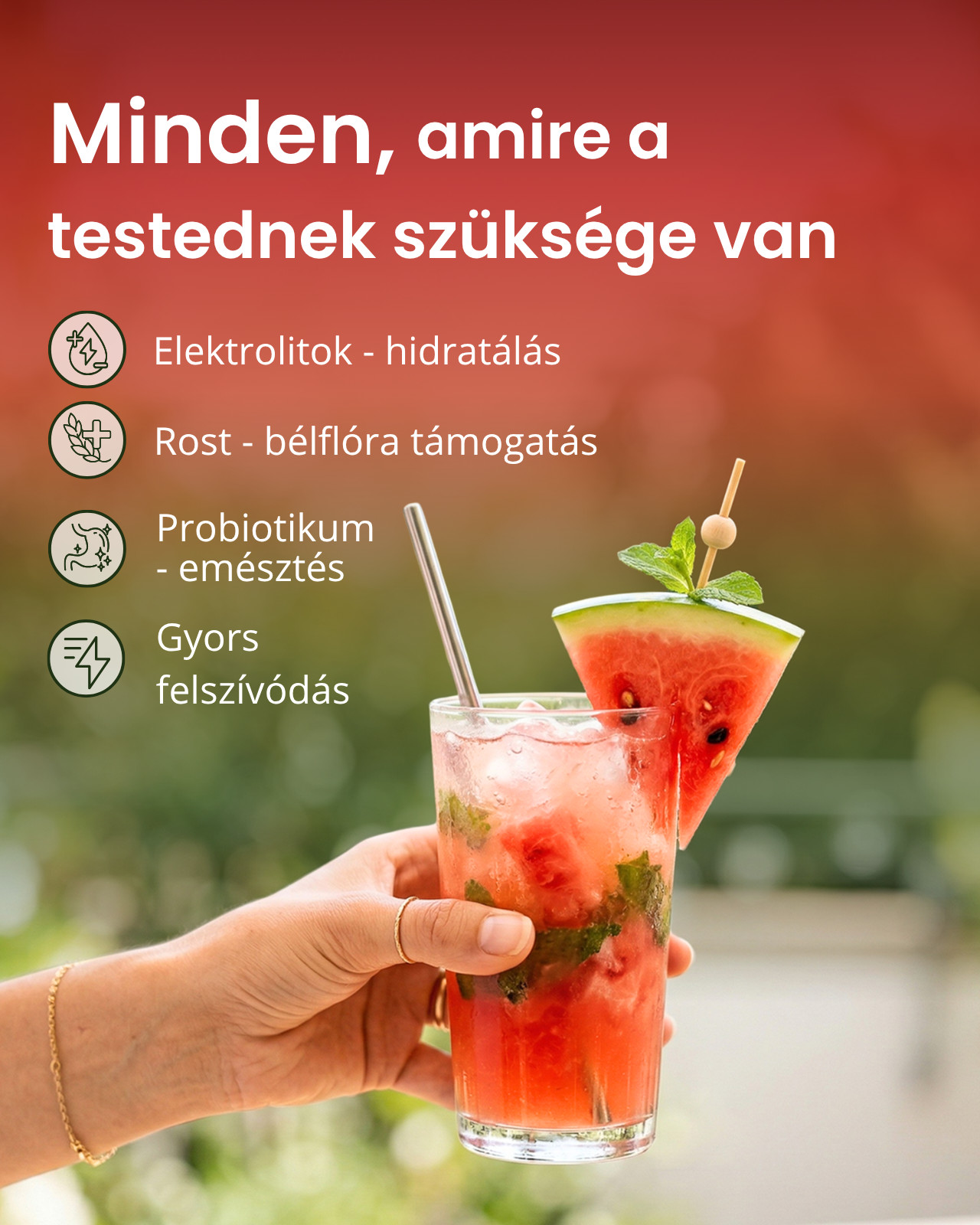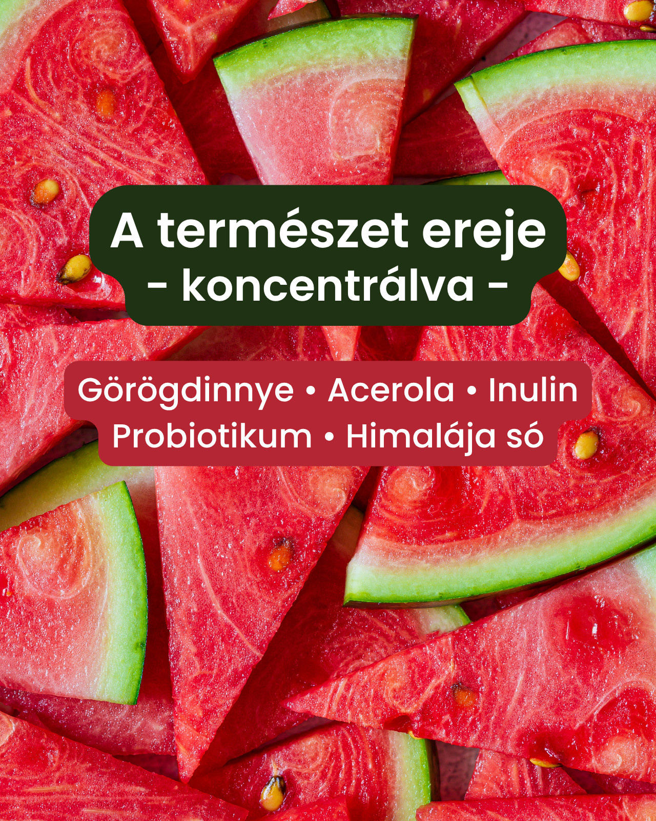 • Acai-gránátalma és görögdinnye liofilizált gyümölcs kivonatok, ami élvezhetővé teszi és ráadásul természetes.