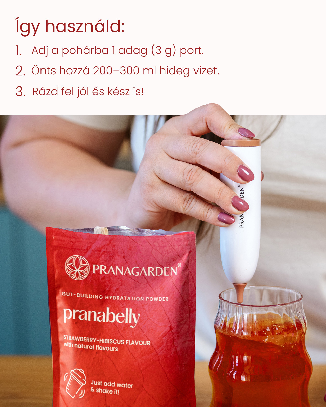 Keverj el 1 teáskanál (3 g) Pranabelly italport 2-3 dl vízben. Az ajánlott napi fogyasztási mennyiséget ne lépd túl.