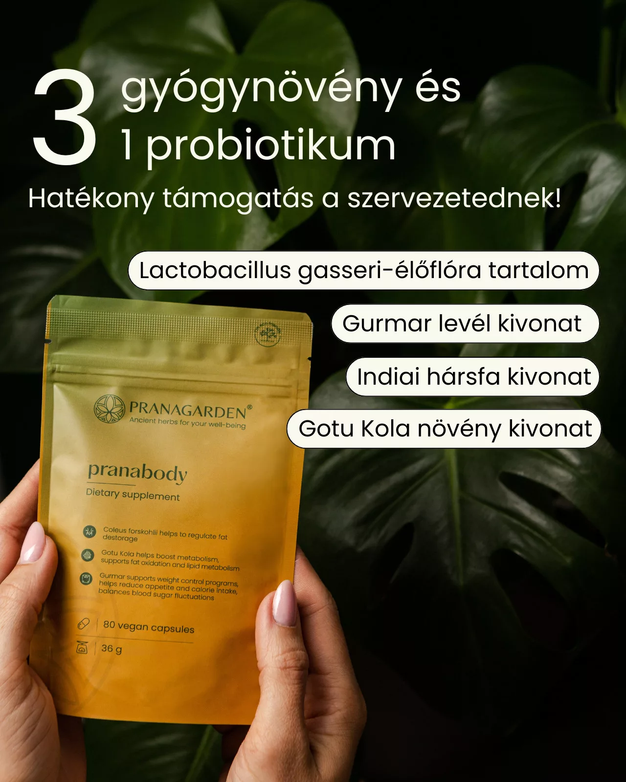 Természetes holisztikus megközelítés: A PranaBody nem csupán az anyagcsere támogatására, hanem a test és az elme harmóniájának megteremtésére is szolgál. A gyógynövények és probiotikumok kombinációja egyensúlyban tartja a szervezet természetes folyamatait, elősegítve a vitalitást és a kiegyensúlyozottságot.