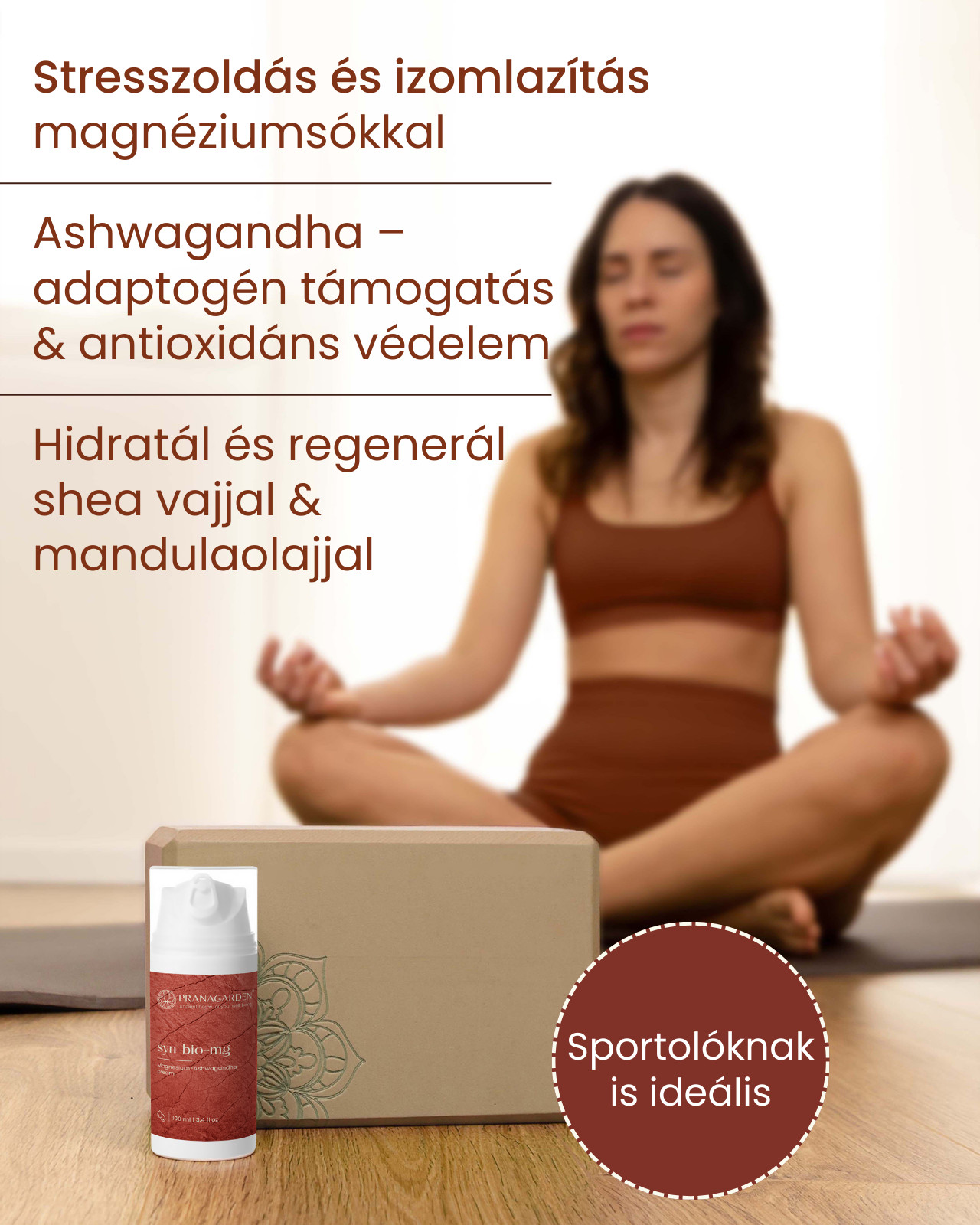 A PranaGarden Syn-Bio-Mg egy célzott regeneráló testvaj, amely a fizikai terhelés, izomfeszülés és a mindennapi stressz által igénybe vett bőr támogatására készült. A készítmény háromféle, biológiailag jól hasznosuló magnéziumsót és Ashwagandha-kivonatot tartalmaz, szinergikus arányban összeállítva, hogy hatékonyan támogassa az izmok ellazulását és a bőr természetes regenerációját. Ideális választás sportolás után, megterhelő napok végén vagy mindennapi regeneráló testápolóként.